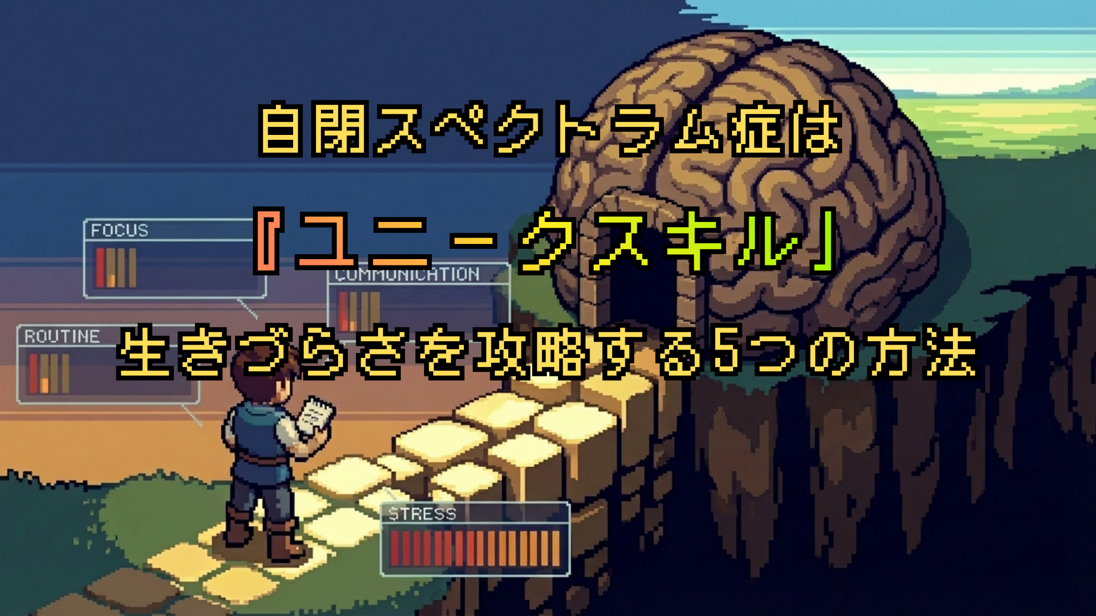 この記事では、ASDを「障害」という言葉だけで終わらせず、 RPGのユニークスキルのように「得意・苦手の配分」 として捉え直します。 そして、今日からできる 5つの攻略法 を、できるだけ分かりやすくまとめました。
