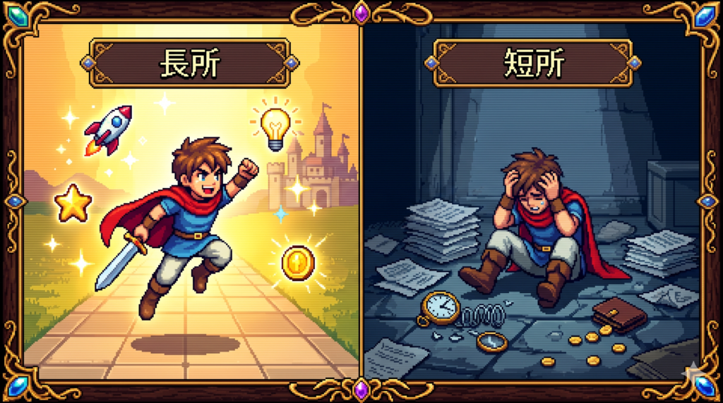 この記事では、ADHDを「だらしない」「怠けている」で片づけず、RPGの【ユニークスキル】のように「バフ」「デバフ」 として捉え直します。 そして、今日からできる 5つの攻略法 を、できるだけ分かりやすくまとめました。